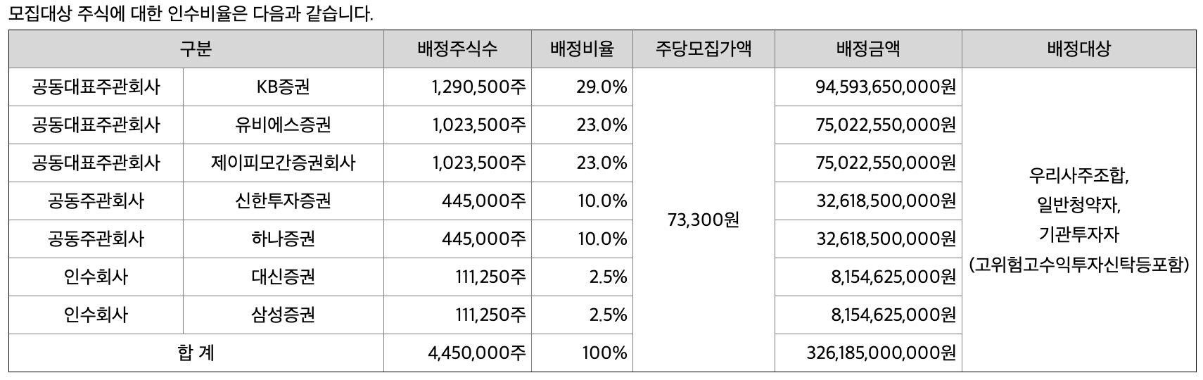 5. 비례배정의 경우 증권사 별로 고객 등급 또는 배정물량에 따른 청약 최대금액 제한이 있을 수 있으니 미리 확인해 보시기 바랍니다.