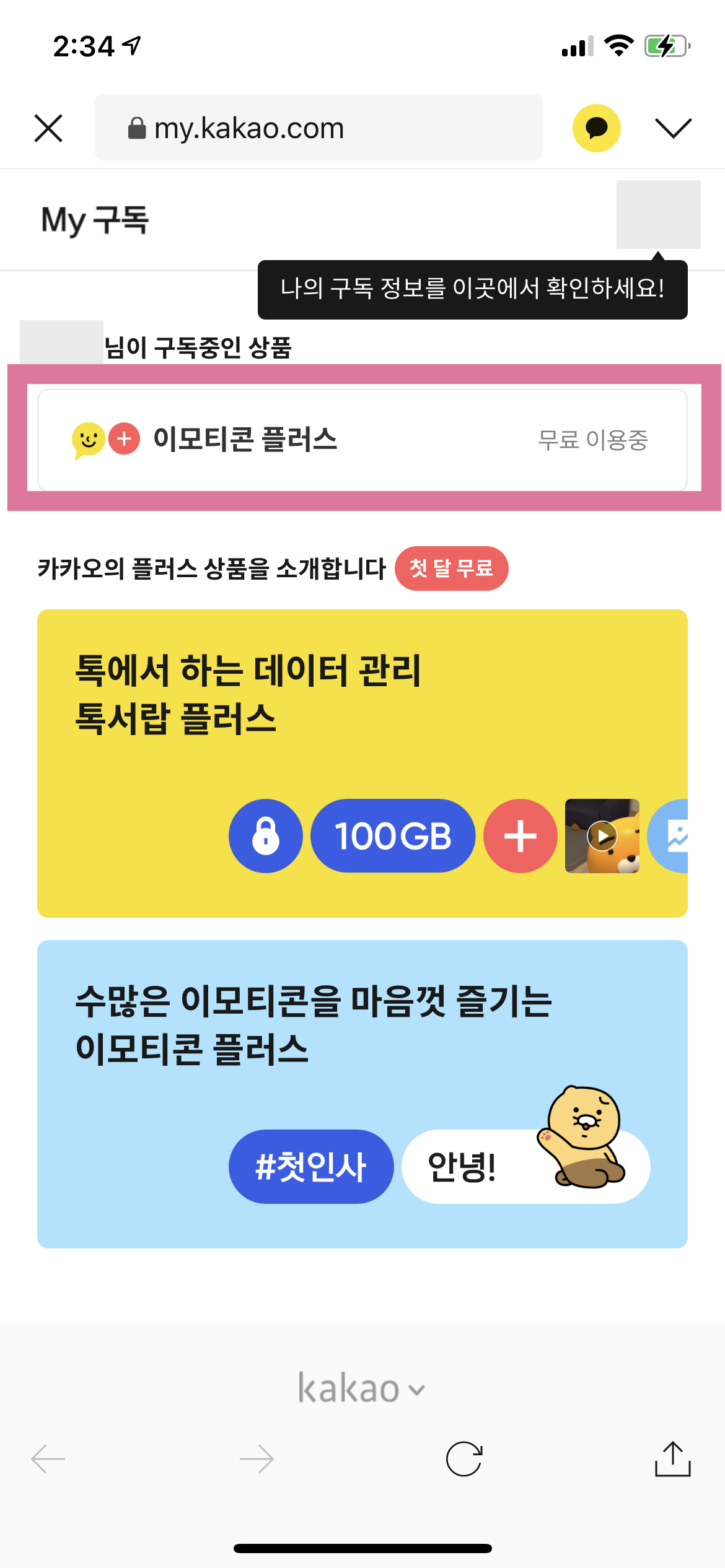 (3) 제가 현지 구독중인 '이모티콘 플러스'를 여기서 확인할 수 있어요.