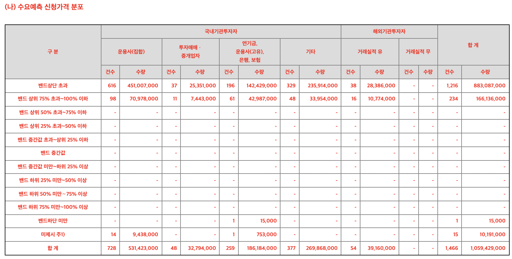 2. 기관투자자 수요예측 경쟁률, 신청가격 분포