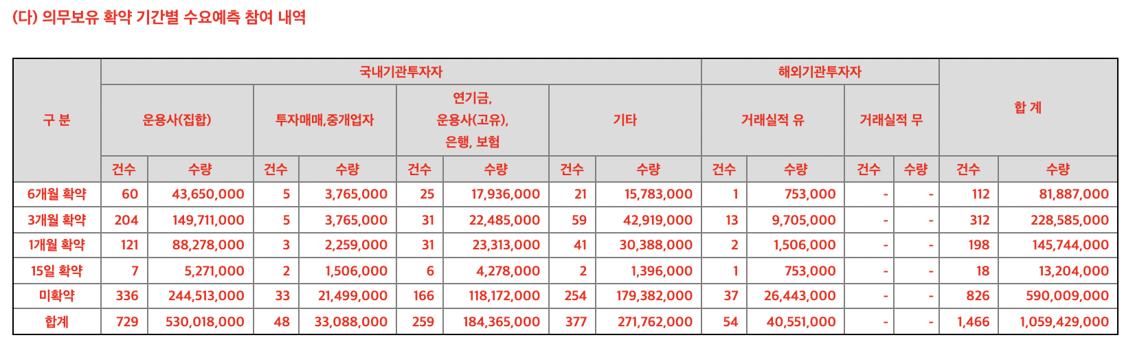 3. 의무보유 확약 기관 수 및 신청 수량