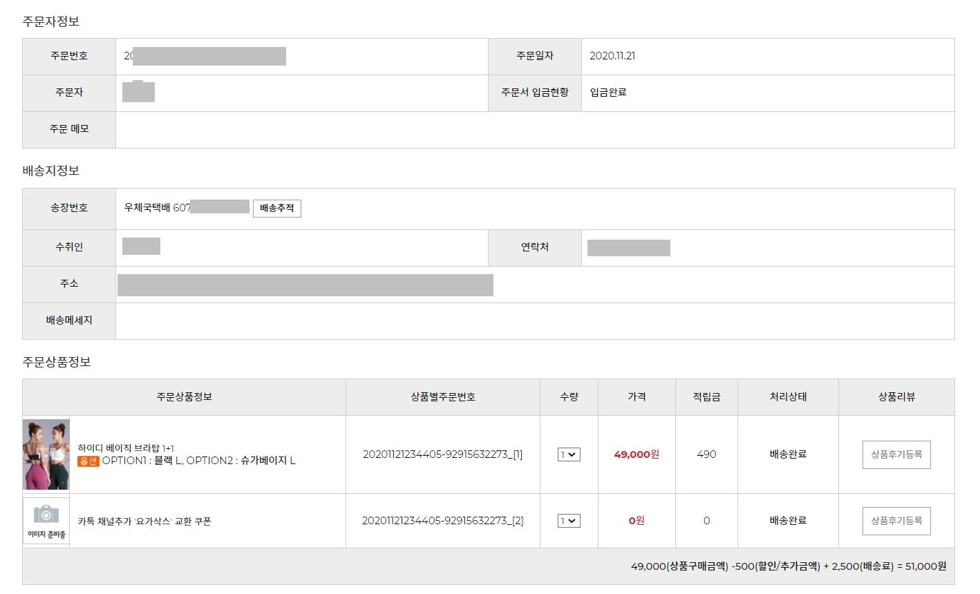 브라탑은 여기 저기 보다가 스포츠브라처럼 기본으로 입을 수 있는 제품을 젝시믹스에서 골랐다. 브라탑은 할인을 해도 25000원 수준으로 더 저렴한 제품은 별로 없었다. 블랙프라이데이라 제품은 늦게 올까 걱정했는데 바로 다음날 도착했다.