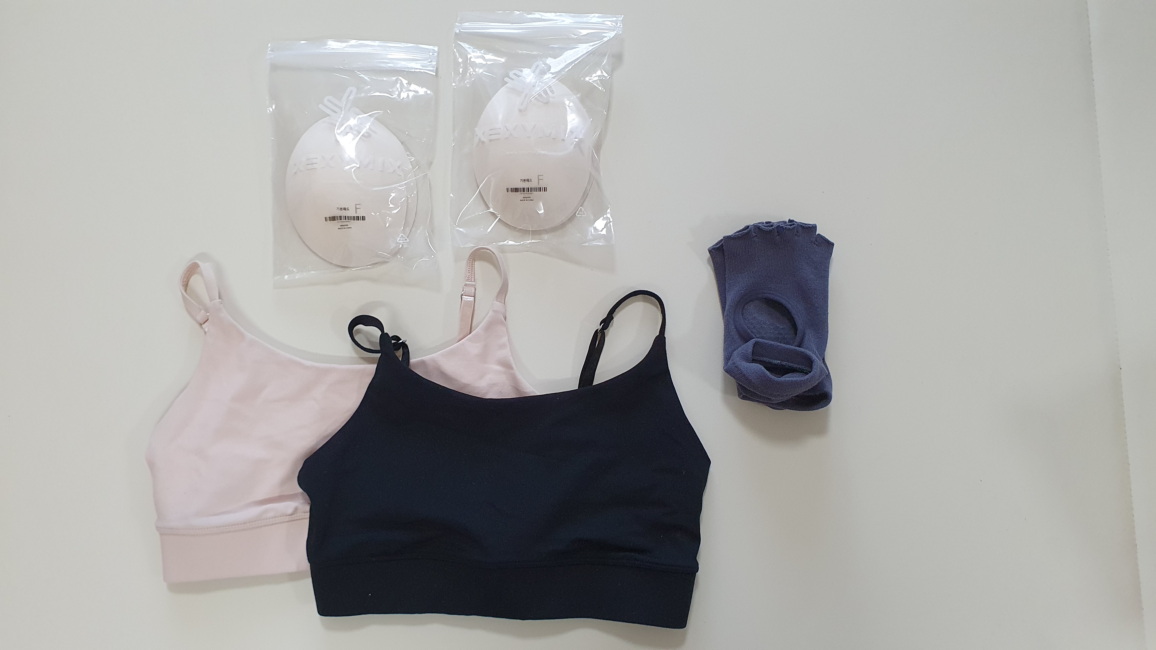젝시믹스에서 하이디 베이직 브라탑 1+1을 49,000원에 구입하고 사은품으로 요가삭스를 구입했다. 색상도 다양하지만 나는 기본이 되는 색을 고르고 싶어서 블랙과 슈가베이지를 선택했다. 내 체형에 조금 작다는 리뷰가 많아서 L 사이즈로 여유있게 주문했는데 시착을 해보니 잘 맞는다. 필라테스를 할때도 불편함이 없는지 수업을 해보고 리뷰를 업데이트 하겠음 (업데이트 예정) 기본 패드도 함께 보내준다.