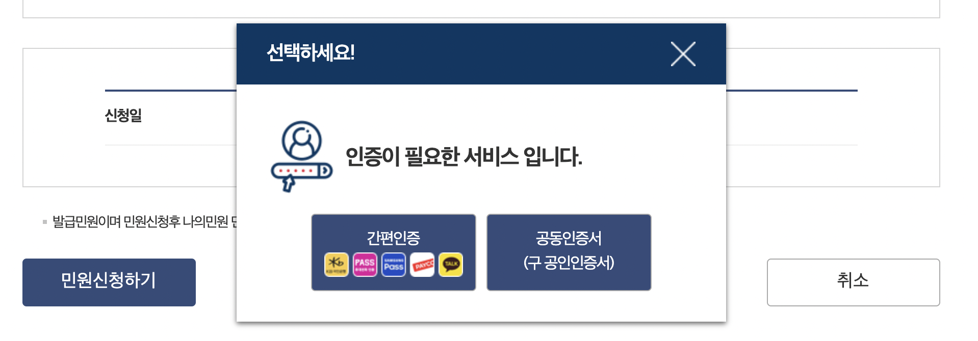 공인인증서 또는 간편인증으로 편리하게 인증하여 서류를 발급할 수 있습니다. 저는 카카오톡 간편인증으로 핸드폰 카카오톡 앱을 통해 인증하고 있습니다.