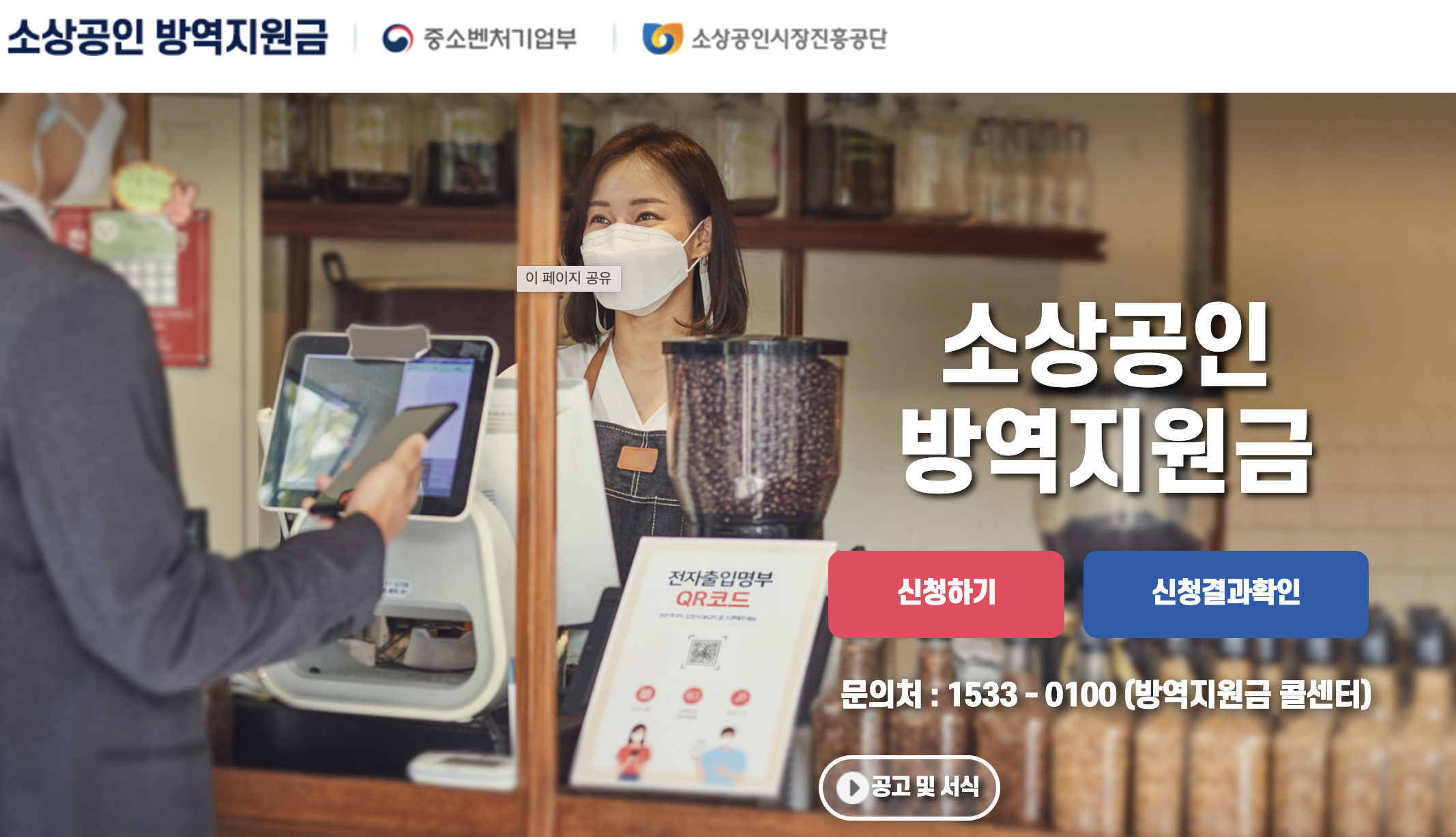 문의 : 소상공인방역지원금 콜센터 1533-0100