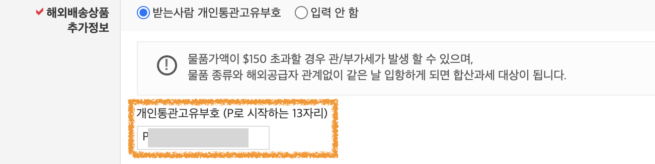 해외에서 물건을 구입하는 경우 개인통관고유번호를 입력해야 합니다. 정확한 이름은 개인통관고유부호이지만 개인통관고유번호로 알고 계시는 분들이 더 많습니다.