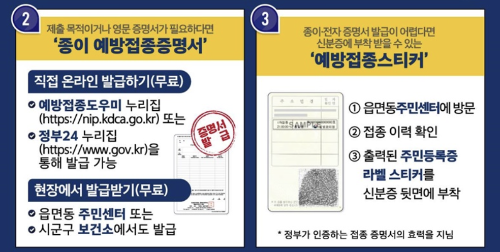 코로나19 예방접종증명서 무료 발급방법 (온라인, 현장발급)