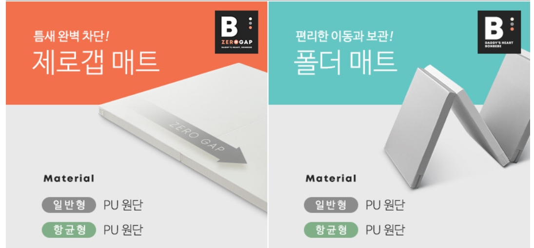 (위 매트가 폴더매트 / 아래 매트가 제로갭 매트)