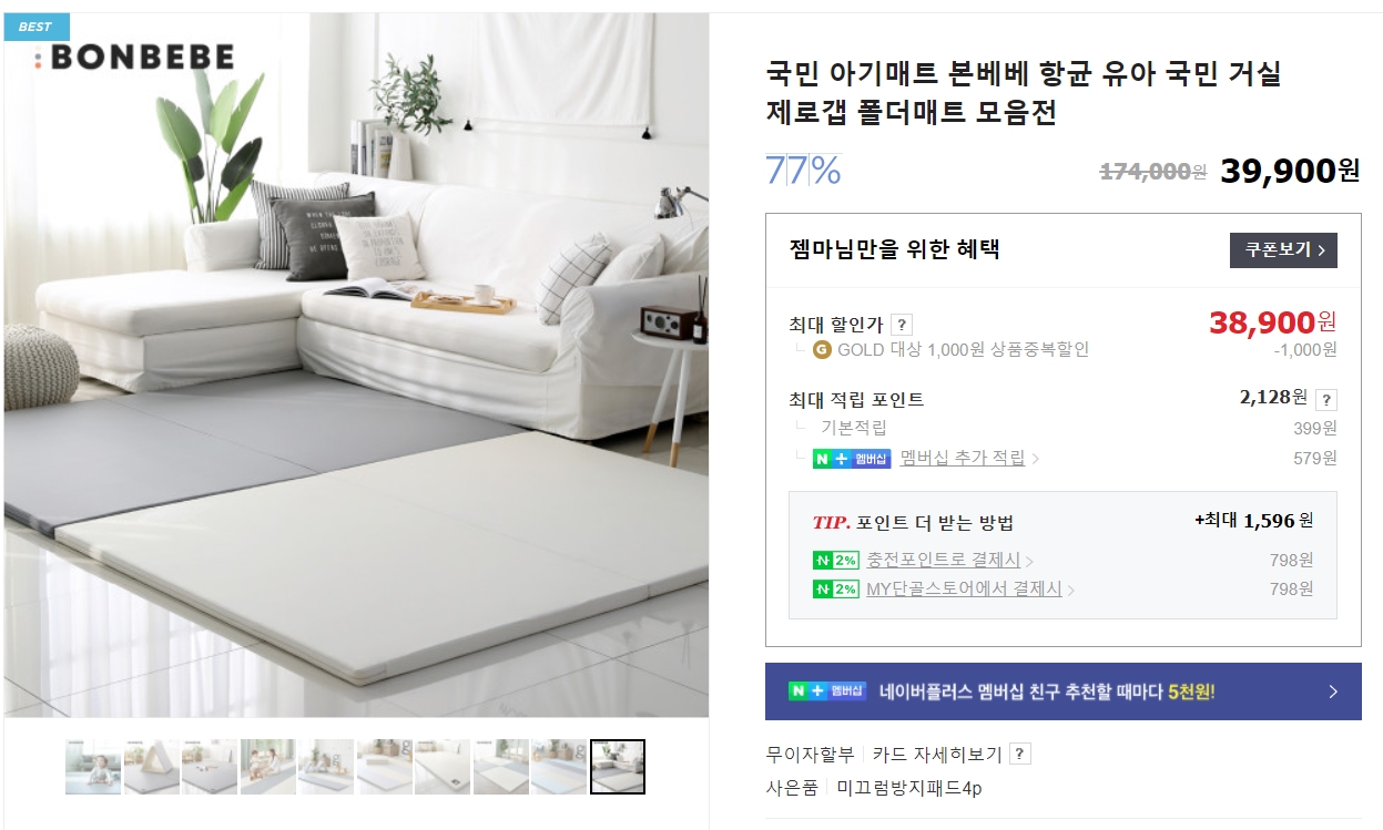 알집매트, 도노도노매트 유명한 매트도 알아봤는데 매트이 왜 이렇게 비싼건지.. 와중 가성비 좋다는 본베베 폴더매트를 찾았다. 후기도 많고 괜찮은것 같아서 첫 매트를 본베베로 들였고 또 부족한 공간에 본베베로 더 구입했다.
