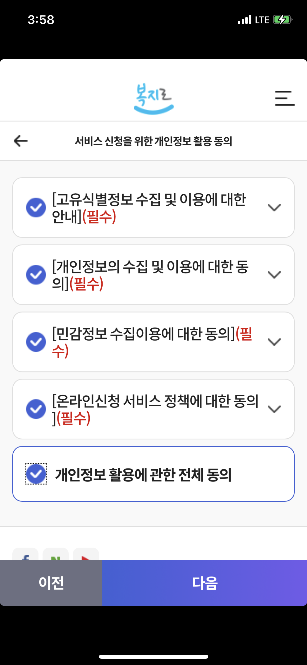 [5] 각종 개인정보 활용동의를 모두 체크하고 다음 버튼을 누릅니다.