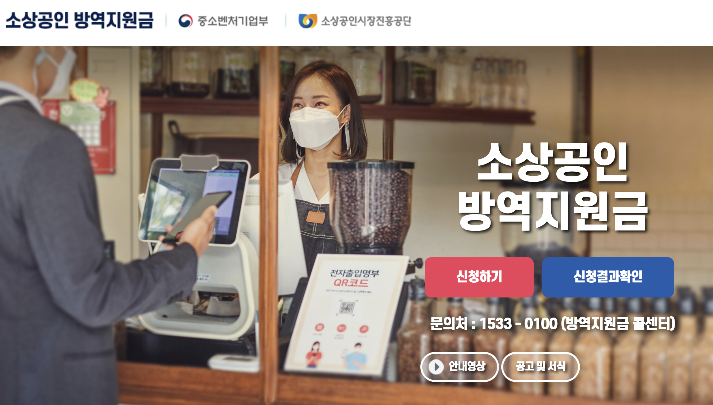 소상공인방역지원 홈페이지에서 오전 9시부터 오후 6시까지 신청할 수 있습니다.