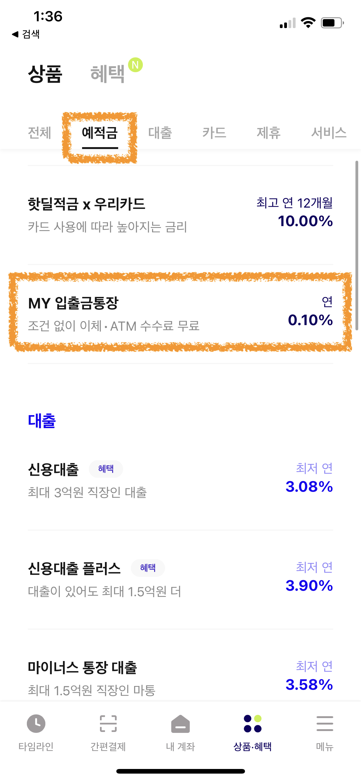 (2) 예적금 > My 입출금통장을 선택합니다.