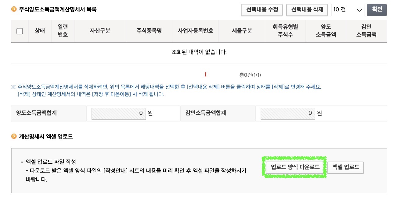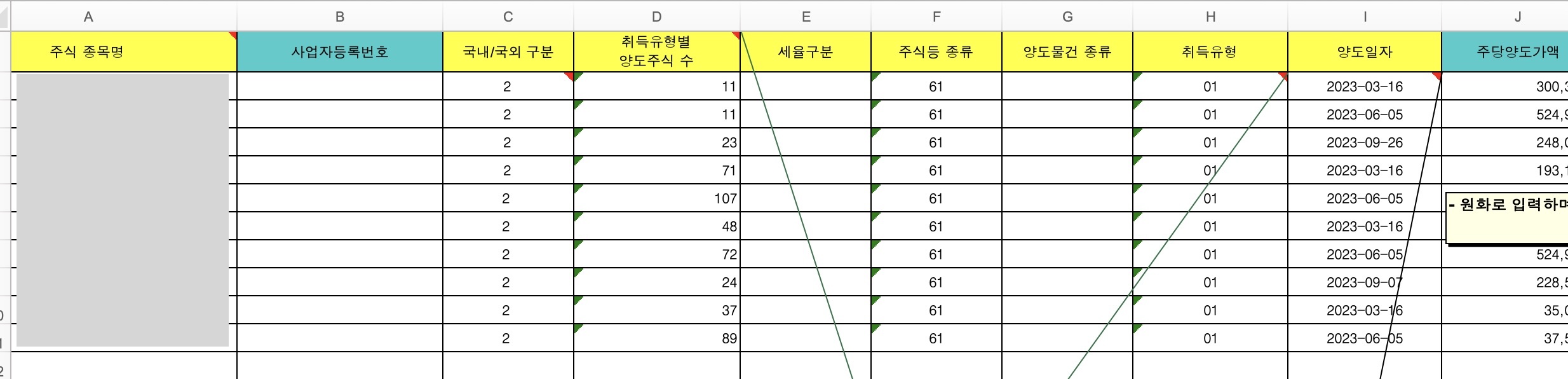 - 양도소득 증빙서류 (증권사에서 파일을 미리 준비합니다)
