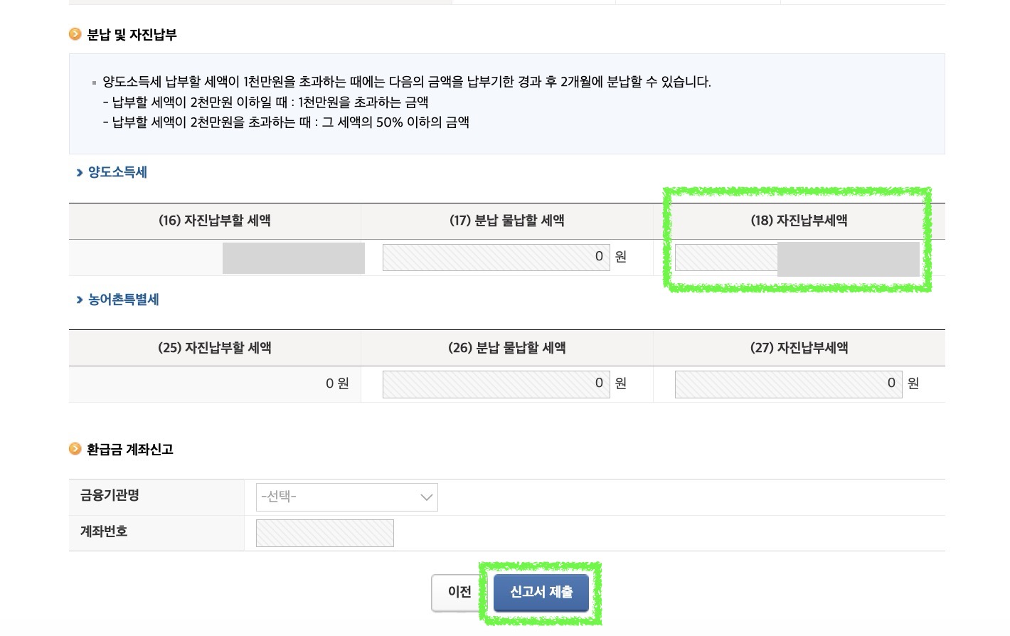 산출된 세액을 확인하고 세금신고를 마칩니다.