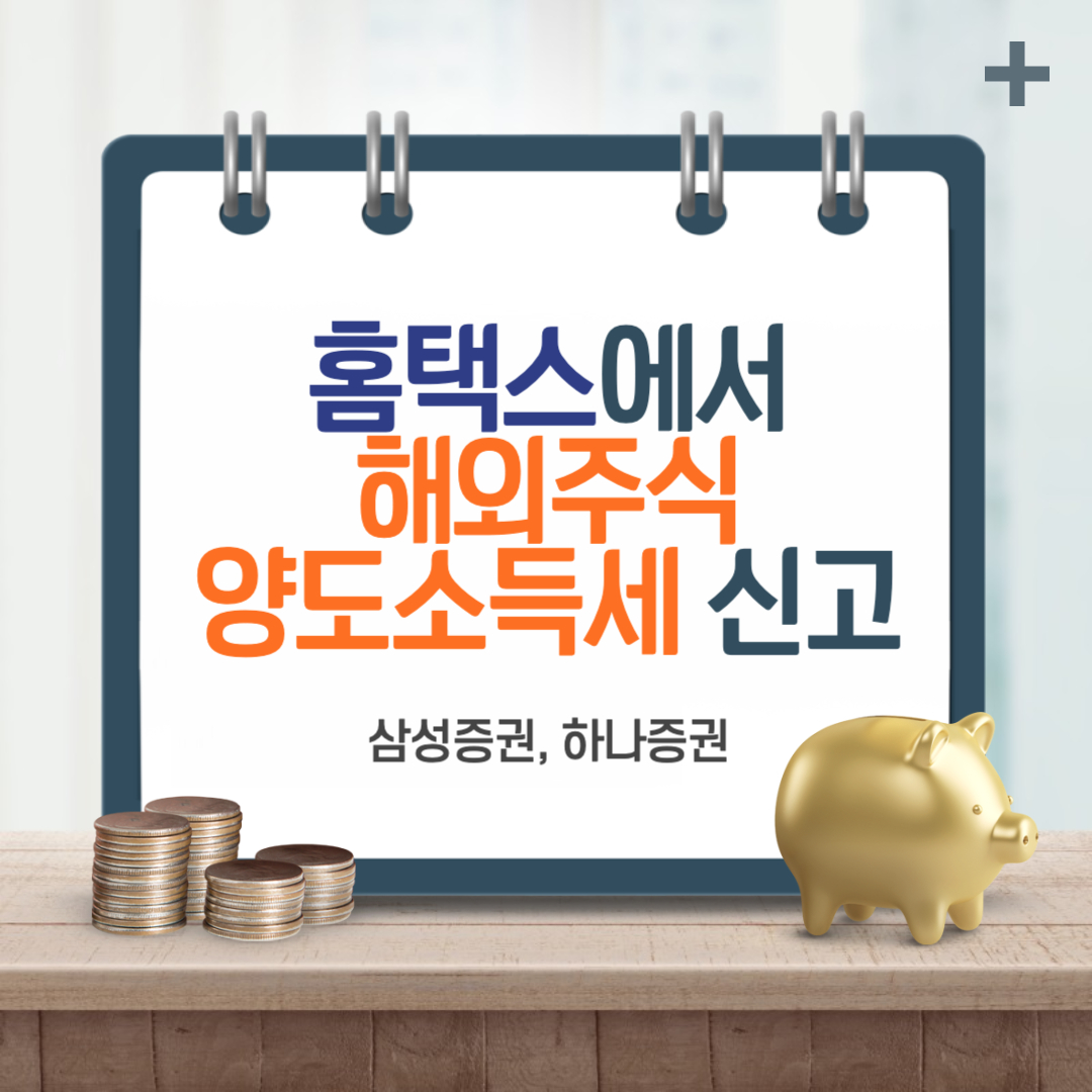 5월 해외주식 양도소득세 신고의 달이 되었습니다. 작년 한 해 동안 해외주식을 매매하여 250만 원 이상의 수익이 발생한 경우 초과 수익에 대해 양도소득세를 납부해야 합니다. 저는 삼성증권과 하나증권에서 해외주식을 매매하여 양도소득세를 납부해야 하게 되었습니다. 홈택스에서 간단하게 신고하는 방법을 알아보도록 하겠습니다. 해외주식 등으로 250만 원 미만 양도소득이 발생한 경우는 세금 신고를 하지 않아도 됩니다. 250만 원 이상 양도소득이 발생했지만 세금 신고를 하지 않을 경우 가산세를 물 수도 있으니 5월 내에 꼭 신고하시고 성실 세금 납부하시길 바랍니다.