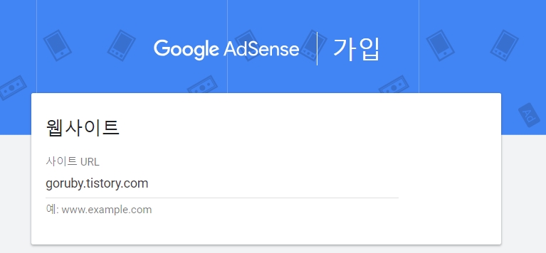 사이트 주소는 goruby.tistory.com 과 https://goruby.tistory.com/을 입력하면서 신청했는데도 안됐다.