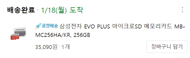 저는 쿠팡에서 삼성전자 EVO PLUS 마이크로 SD 메모리카드 MB-MC256HA/KR, 256GB를 샀습니다.