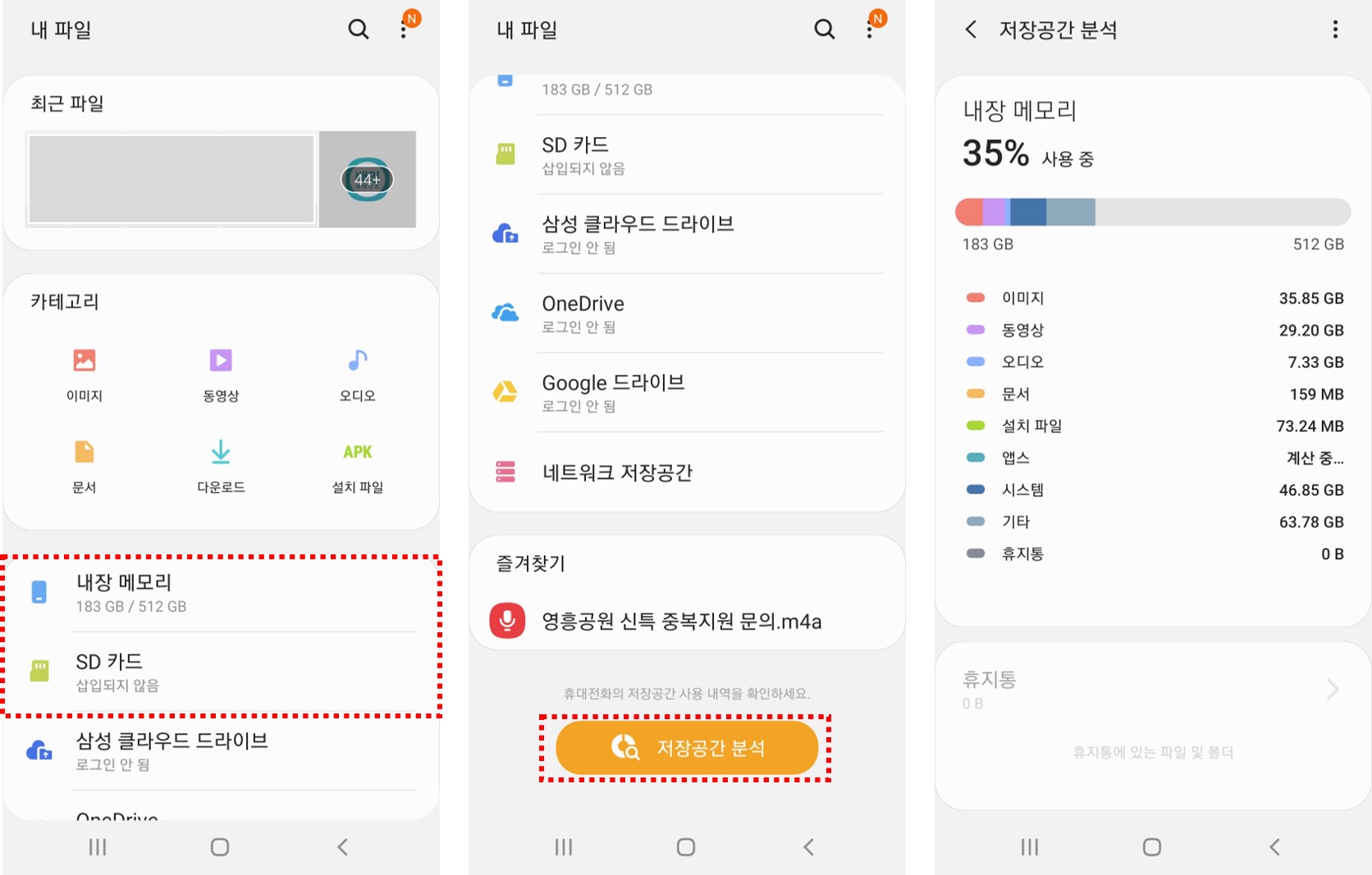 왜냐하면 지금까지 핸드폰 외부 저장공간만 늘렸기 때문에 내부저장공간에서도 열심히 파일을 옮겨야 합니다.