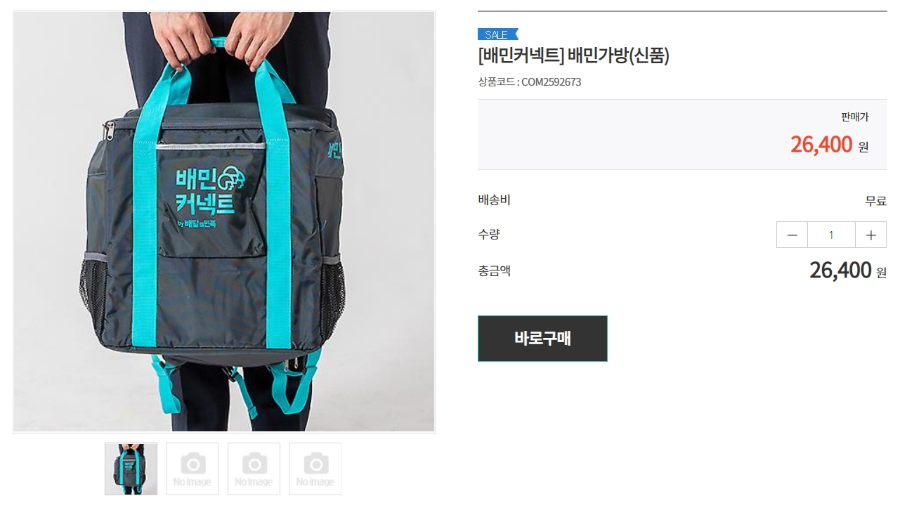 배민가방이 있으면 배달을 더 신나게 할 것 같지만 배민가방은 26,400원이나 합니다.