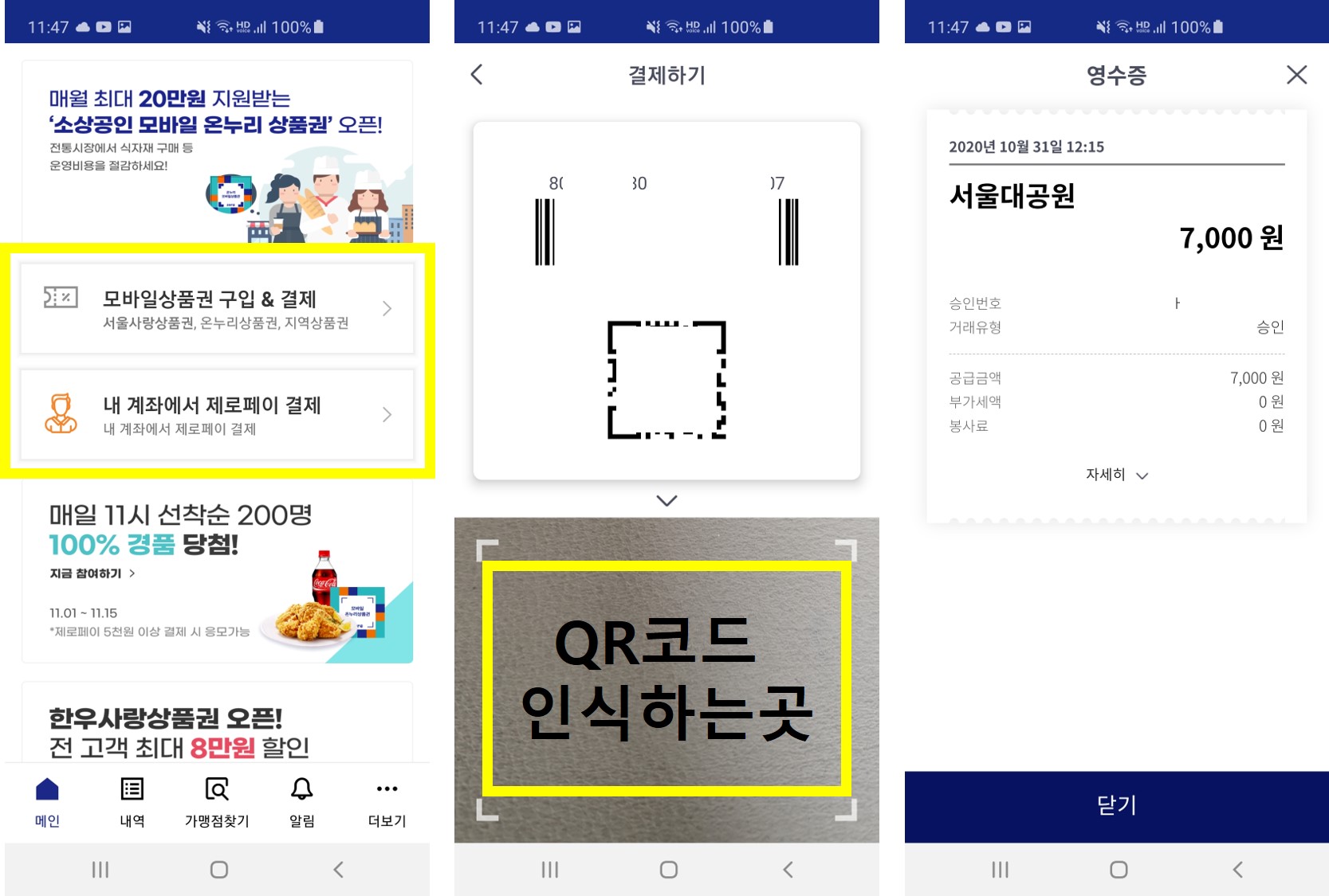 제로페이는 QR코드로 결제를 하는데 요즘에는 지자체에서 만이 온라인 상품권, OO페이 등 사업을 하기 때문에 사용방법이 하나도 어렵지 않다.