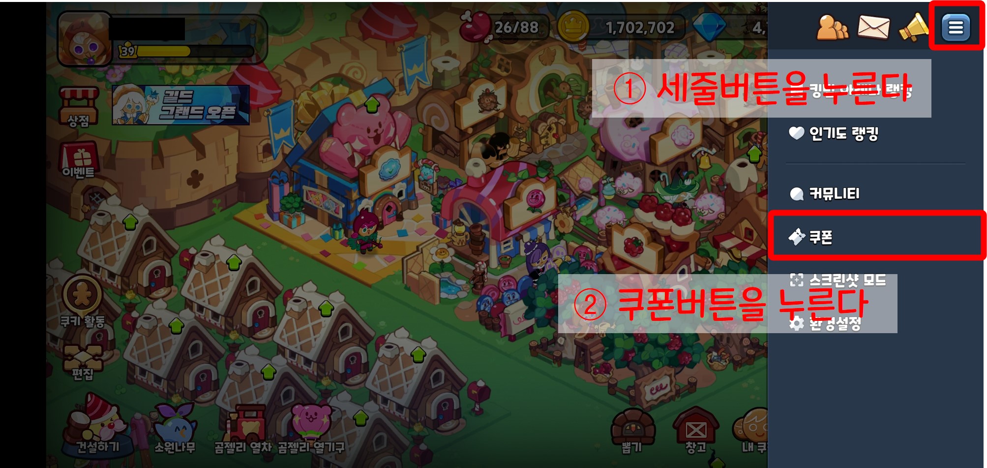 ■ 쿠키런킹덤 쿠폰번호 입력하기