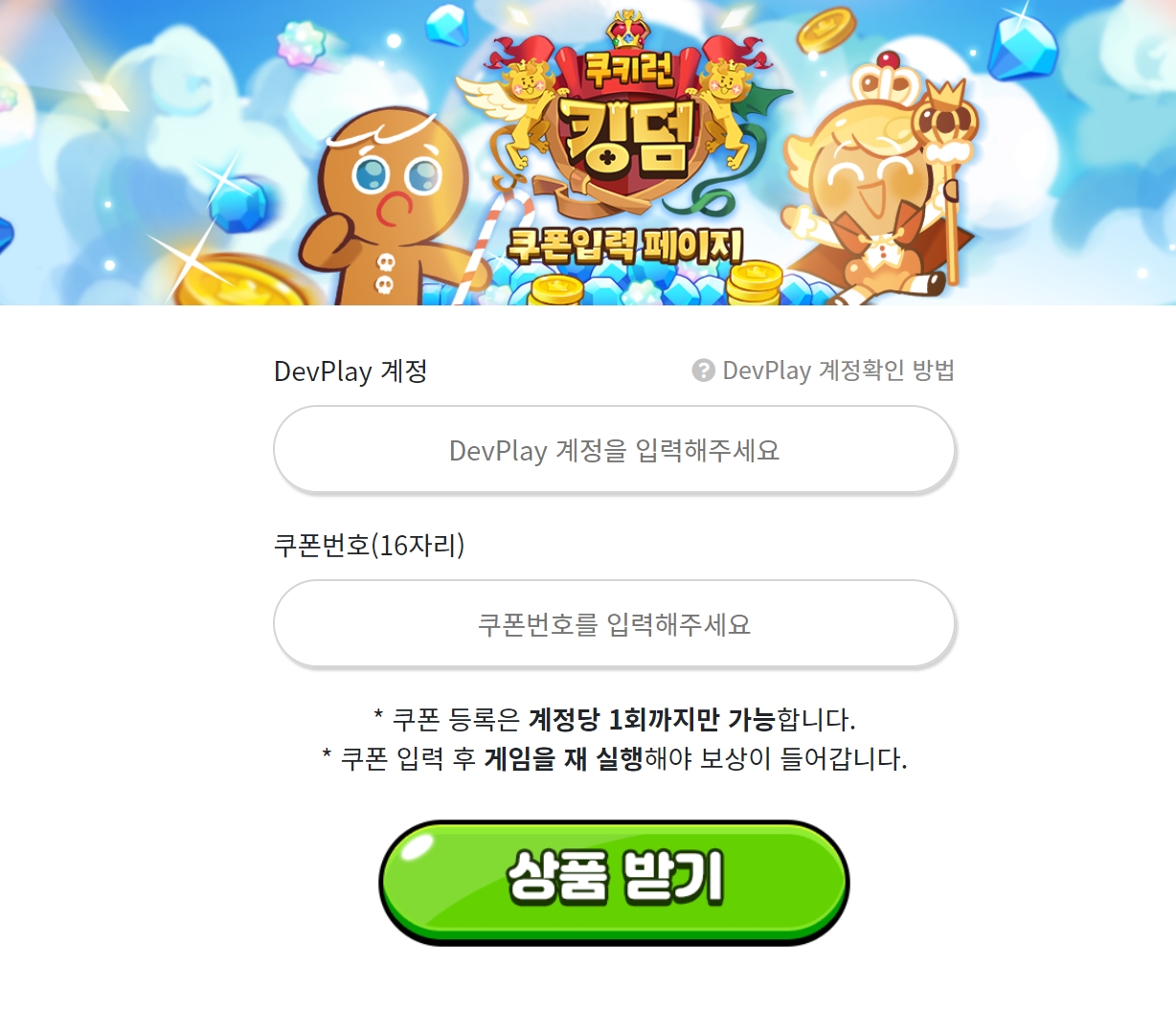 ■ 쿠키런 킹덤 쿠폰 입력 페이지