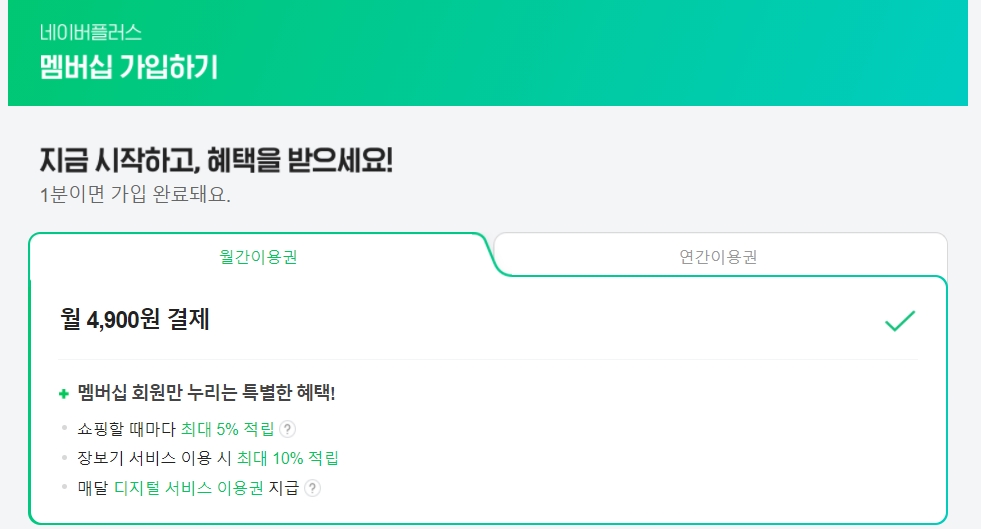 네이버 플러스 멤버십은 네이버에서 물건을 구입하지 않을때는 월간이용권이 아까울 수 있어요.