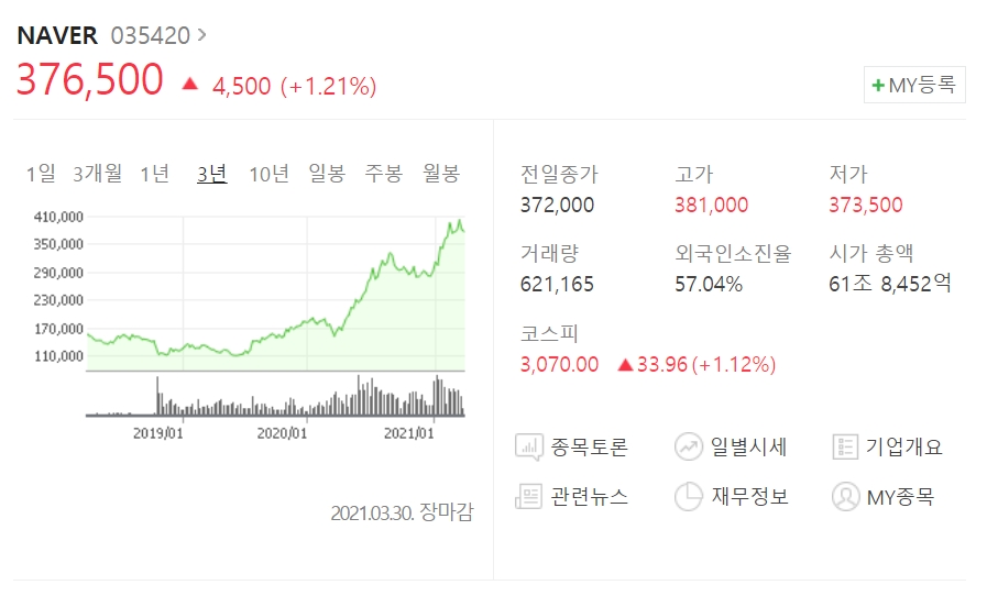 자본이 있으니 이렇게 과감하게 마케팅을 할 수 있는거고요. 잘나가는 네이버니까 이렇게 파격적인 시도도 할 수 있는것 같습니다. 코로나 수혜를 입기도 했고 또 그만큼 잘하기도 하구요. 요즘 카카오와 함께 매일 신고가를 쓴다는 뉴스를 보는것 같아요.