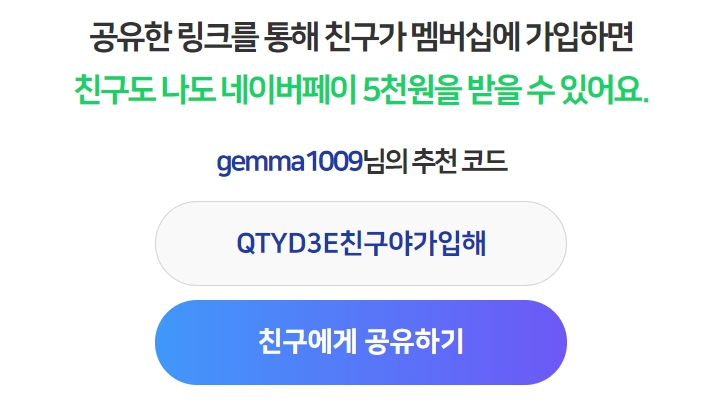 추천인 코드 QTYD3E를 입력하면 저와 추천인 코드를 입력한 사람 모두 5000원 씩 받을 수 있어요.