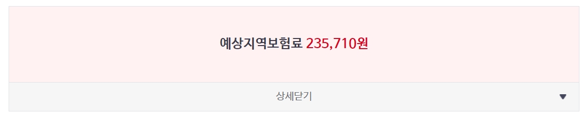 연금금액의 30%, 그리고 보유하고 있는 주택은 공시지가의 60% 금액을 입력했어요. 지역가입자의 건강보험료를 계산하면 23만 5천원이 나옵니다. 직장가입자로 보면 큰 금액이지만 지역 가입자로 보면 많은 금액은 아닌편이예요.