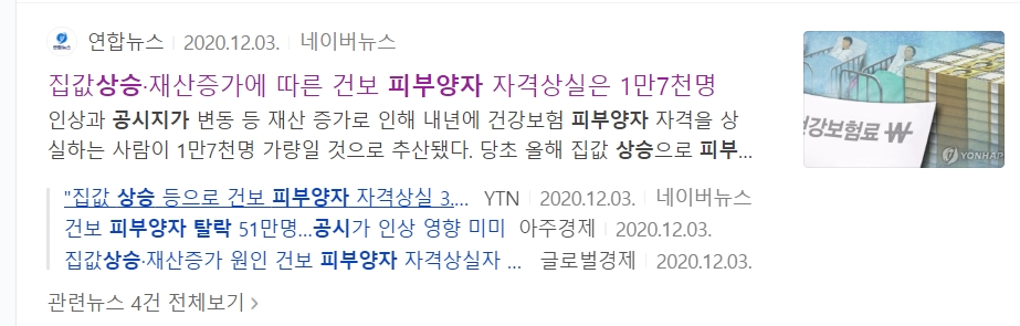수년간 집값이 상승하였고 올 21년 1월 공시지가가 많이 올라 난리였습니다. 아직 재산세, 종부세가 나오지는 않았지마 모의 계산하는 사람들도 정말 많았고요. 와중 공시지가 상승으로 피부양자 자격이 상실되는 사람이 수만명에 이른다는 기사가 나왔어요. 재산이 증액하여 피부양자 자격이 상실되는 경우 즉각적으로 상실되는게 아니기 때문에 내가 그 대상자인지 알기 어려워요.