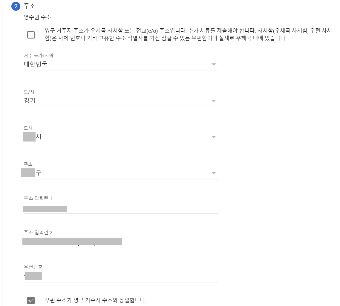 7. 주소를 적습니다.