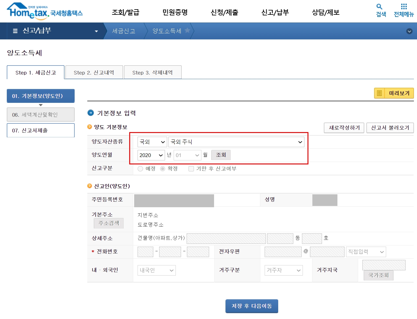 [1] 홈택스에서 양도소득세 신고 납부하기