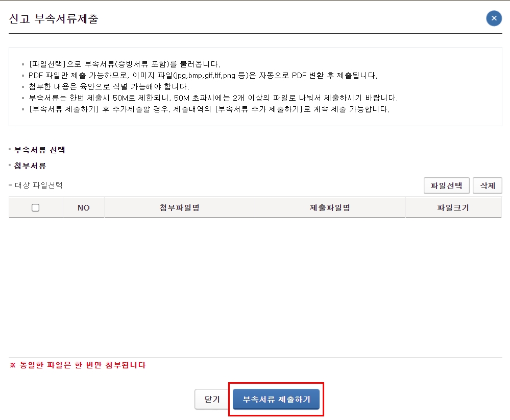 그 신고 내역을 클릭하여 부속서류를 첨부해야 합니다.