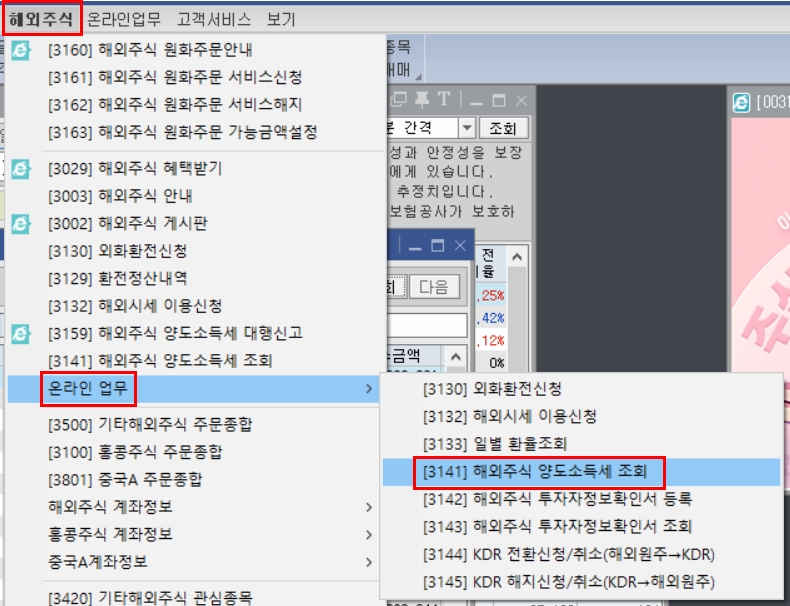 (6) 해외주식 매매했던 HTS에 들어가 양도소득세 관련 자료를 다운로드합니다.