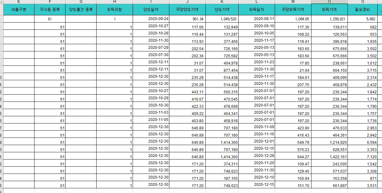 엑셀을 다운 받으면 이렇게 작년 한해동안 매매했던 종목이 나옵니다.