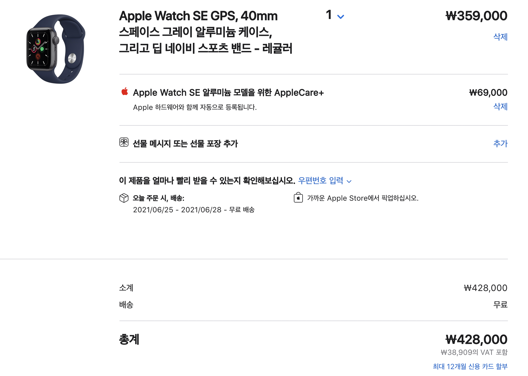 2년 동안 애플케어를 받는데 69,000원해서 총 428,000원을 결제했어요.