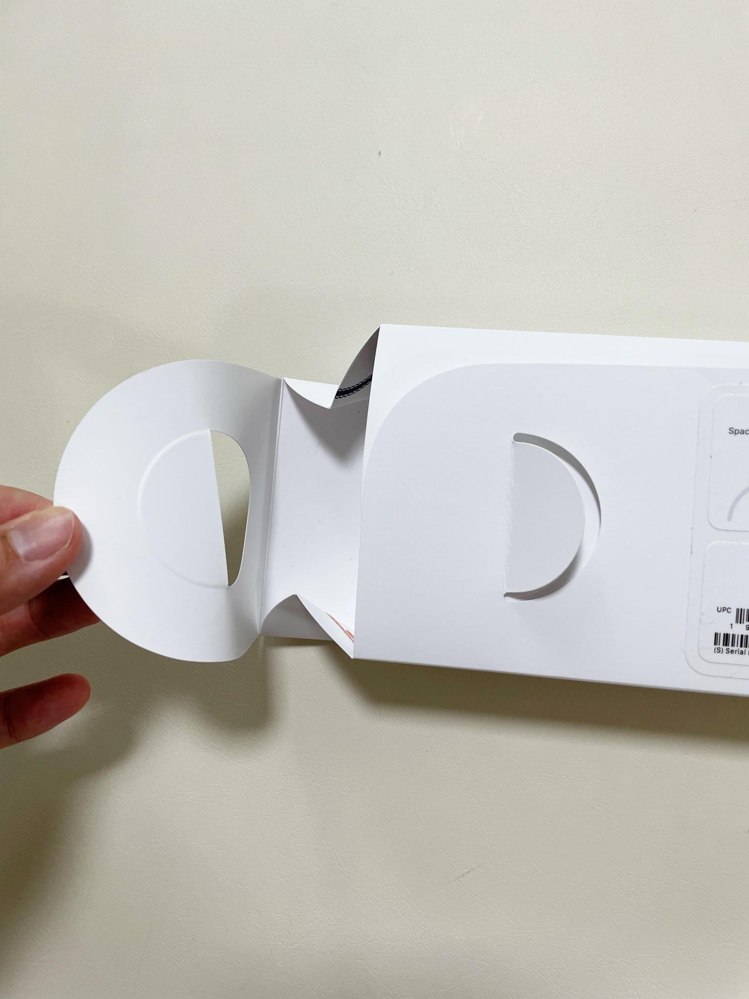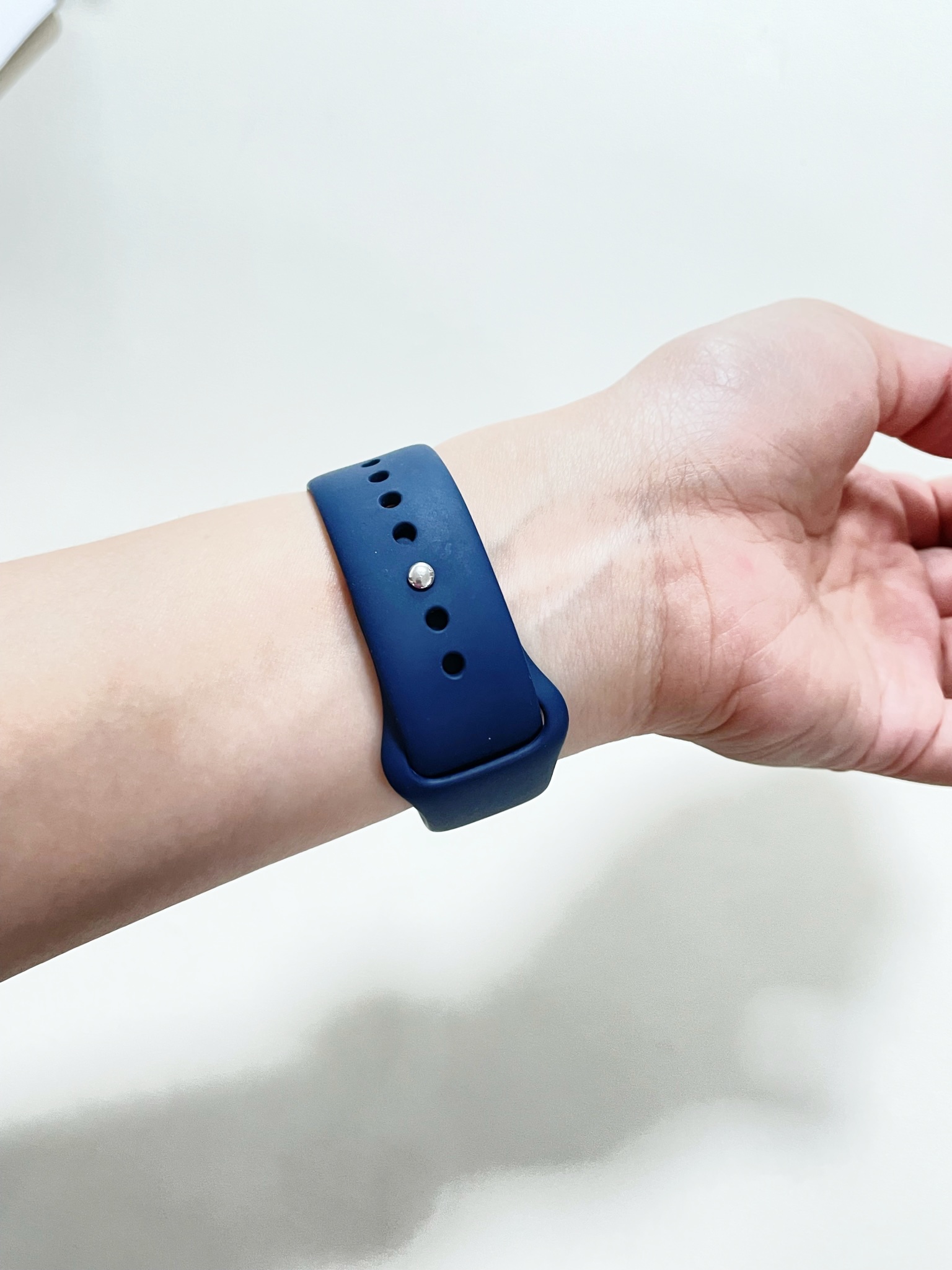 애플워치 밑에는 스트랩박스가 있고요. 저는 네이비 스포츠밴드로 결정했어요. 앞서 말씀드렸다 시피 저는 운동을 꾸준하게 기록하고 관리하기 위해 애플워치를 구입했는데요. 고민없이 바로 스포츠스트랩으로 골랐어요. 밝은 색상이 이뻐보였지만 (화이트) 실 사용하다 보면 아무래도 떼가 탈 수 있다고 해서 다크한 색으로 골랐어요. 화이트 스트랩이 참 예쁜데 아쉽지만 어쩔 수 없지요. 제 피부톤과 잘어울리는 네이비로 골랐습니다.