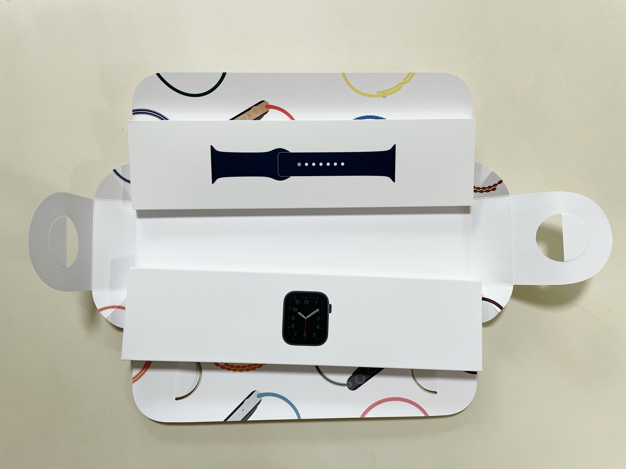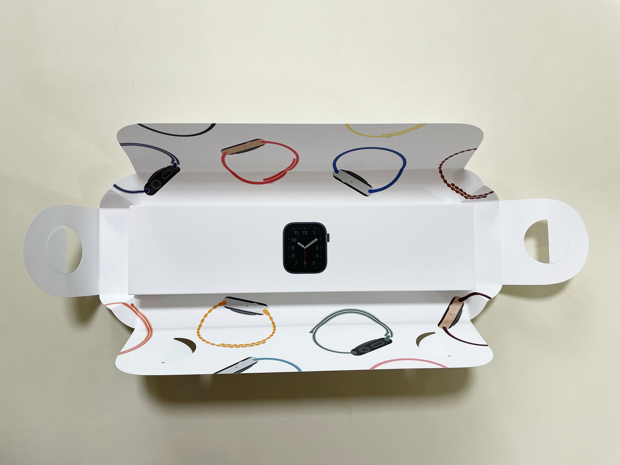 한쪽에 애플워치가 있고요. 가운데에는 설명서가 들어 있습니다.