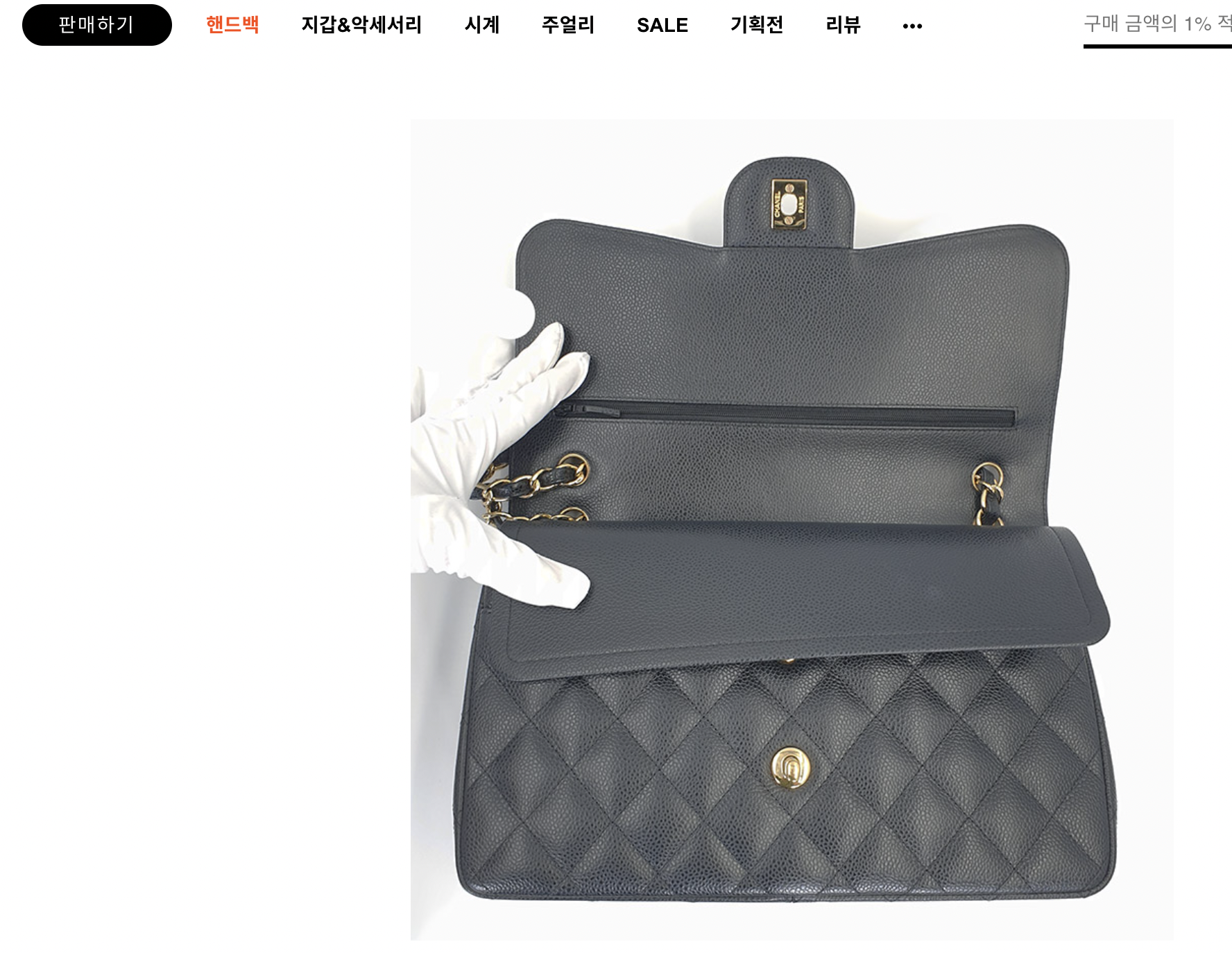 판매 사진을 살펴보면 장갑낀 손으로 제품을 이리저리 촬영해서 업로드합니다. 체인, 가방 모서리 등 가죽이 상하기 쉬운 곳도 자세히 고지합니다. 살것도 아니지만 구경하는 재미가 쏠쏠하더라고요.