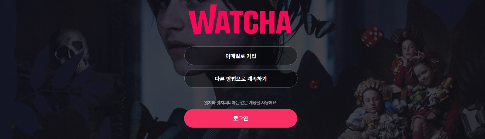 watcha.com/start 링크를 클릭하거나 아래 이미지를 클릭하면 왓챠 회원가입 페이지로 이동합니다.