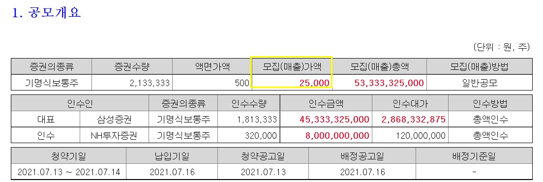 공모 예정 금액 : 53,333,325,000원 (약 533억)