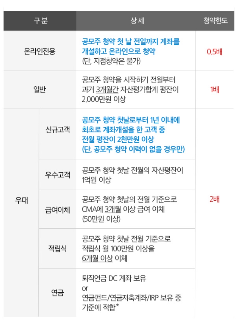 증권사 별로 고객 등급에 따라 공모주 청약 시 우대를 합니다. 어느 증권사로 공모주 청약을 해야 우대를 받을 수 있을 지 미리 체크해주세요.